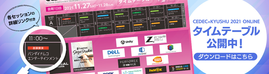 CEDEC+KYUSHU 2021 ONLINEの全講演は、イベント終了後に期間限定でアーカイブ配信致します。